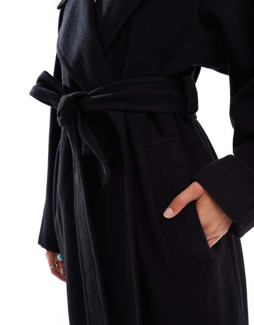 Weekday Kia wool blend oversized coat with tie waist detail in black Very well made.