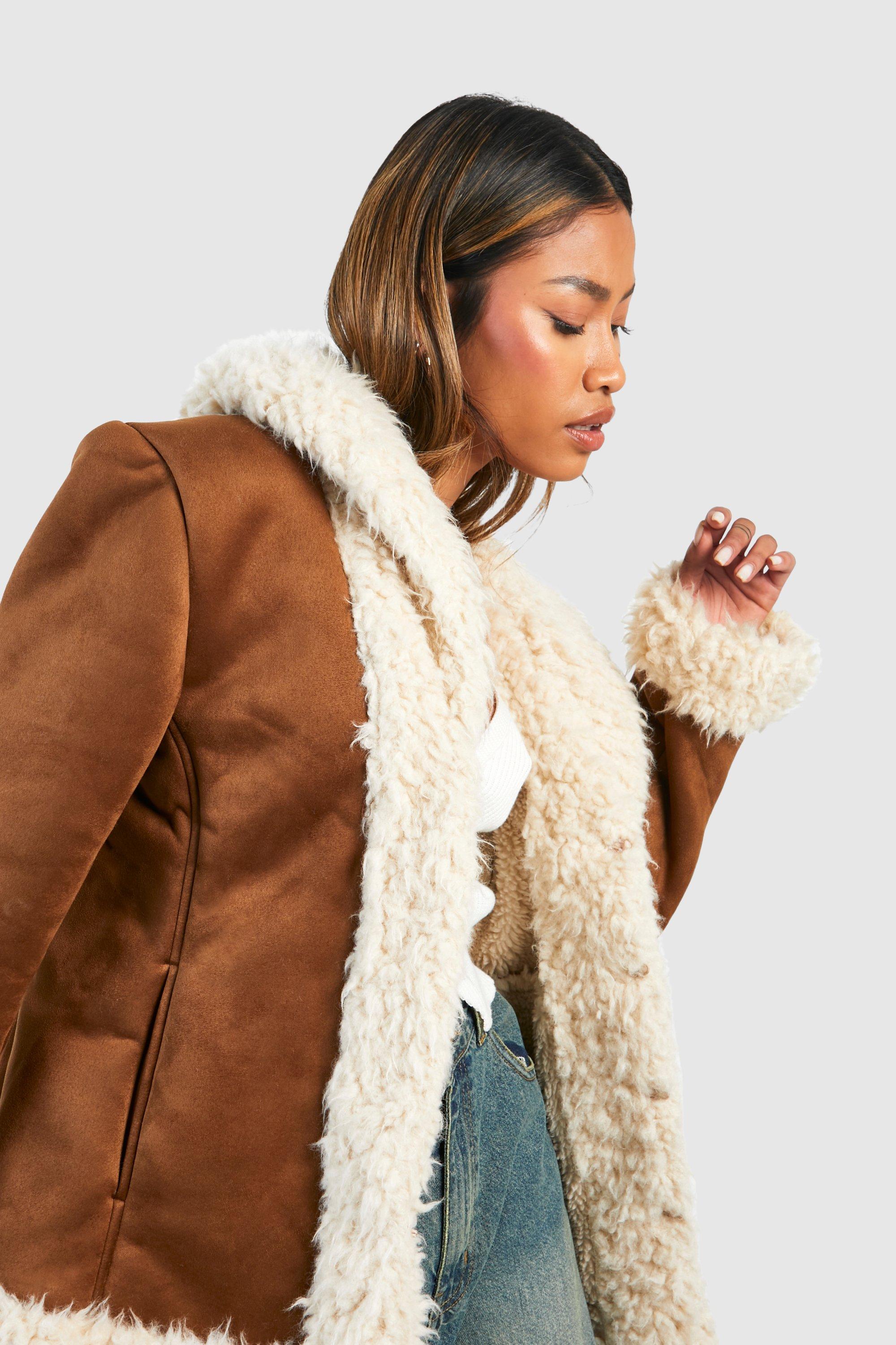 Manteau effet daim a bordure en fausse fourrure Very well made.