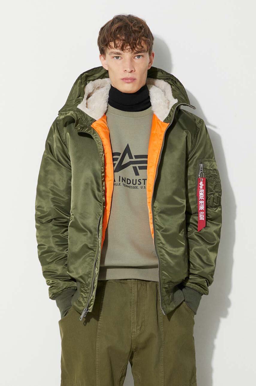 Alpha Industries jacket MA 1 Hooded men s green color 158104.257 at PRM US Very well made.